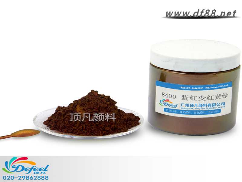 8400 紫紅變紅黃綠變色龍粉可應(yīng)用于涂料、油墨、塑料各產(chǎn)業(yè),產(chǎn)品之設(shè)計大多以室內(nèi)(無紫外光之環(huán)境)與室外(有紫外光之環(huán)境)有顏色變化為訴求。